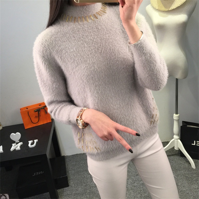 2015新款韓版冬季女裝長毛加厚半高領流蘇針織毛衣廠家批發(fā) /