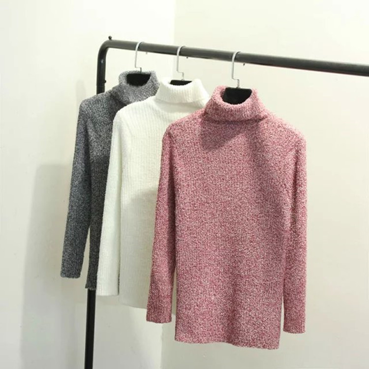 歐洲站2015秋冬女裝新款 高領(lǐng)加厚保暖雙色絨打底衫長(zhǎng)袖套頭毛衣 /