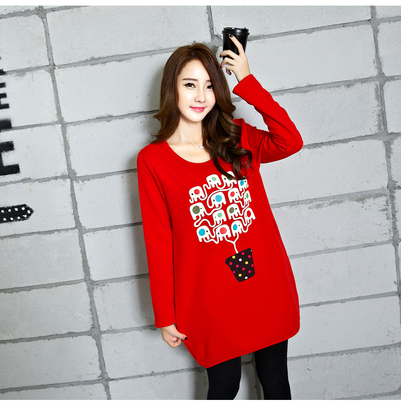 秋冬新款大碼女裝韓版長(zhǎng)袖衛(wèi)衣寬松加絨加厚中長(zhǎng)款T恤打底衫 /