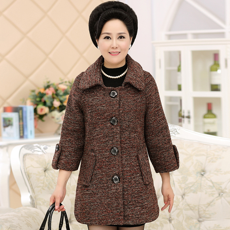 2015秋冬中老年女裝毛呢外套 新款媽媽裝冬裝呢子翻領(lǐng)中年女風(fēng)衣 /