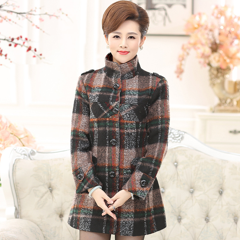 中老年女裝呢子大衣 媽媽裝立領(lǐng)修身顯瘦外套 中年羊毛呢格子風(fēng)衣 /