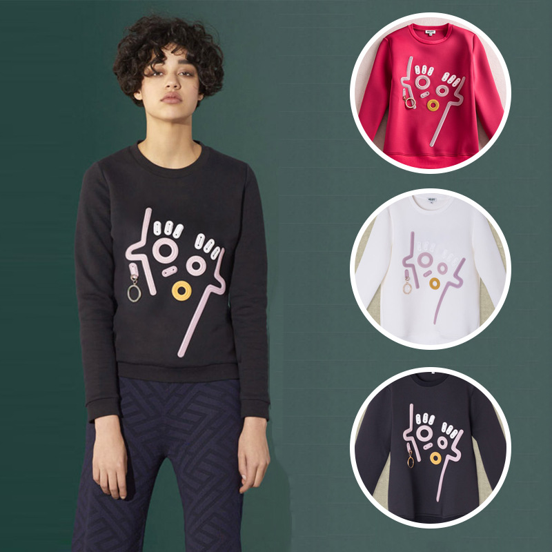 歐美大牌女裝外貿(mào)原單KEN*秋款新品太空棉時尚廓形符號臉吊墜衛(wèi)衣 /