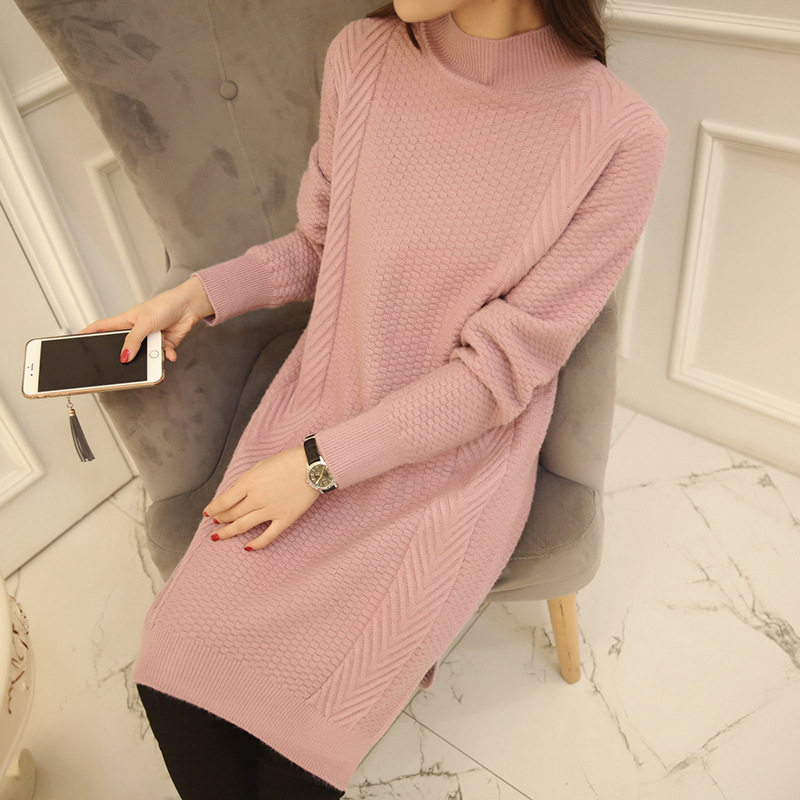 2015冬季新款韓版中長(zhǎng)款半高領(lǐng)純色簡(jiǎn)約百搭毛衣女加厚打底衫批發(fā) /