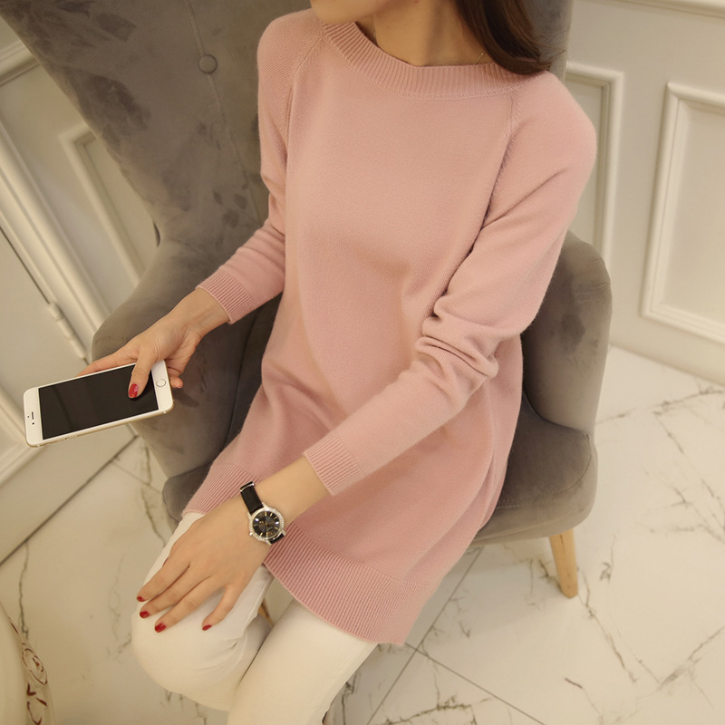 2015冬季新款韓版圓領(lǐng)純色簡(jiǎn)約百搭寬松大碼打底毛衣女針織衫批發(fā) /