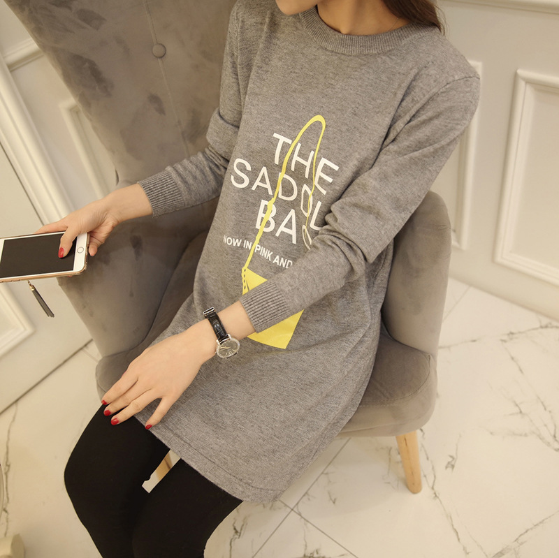 2015冬季新款韓版字母中長(zhǎng)款圓領(lǐng)毛衣女加厚打底針織衫批發(fā) /