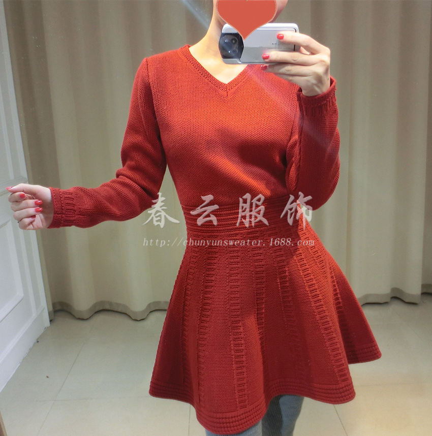 ASM2015A/W 秋冬系列 加厚制作 小V領(lǐng)超挺括收腰裙擺針織OP /