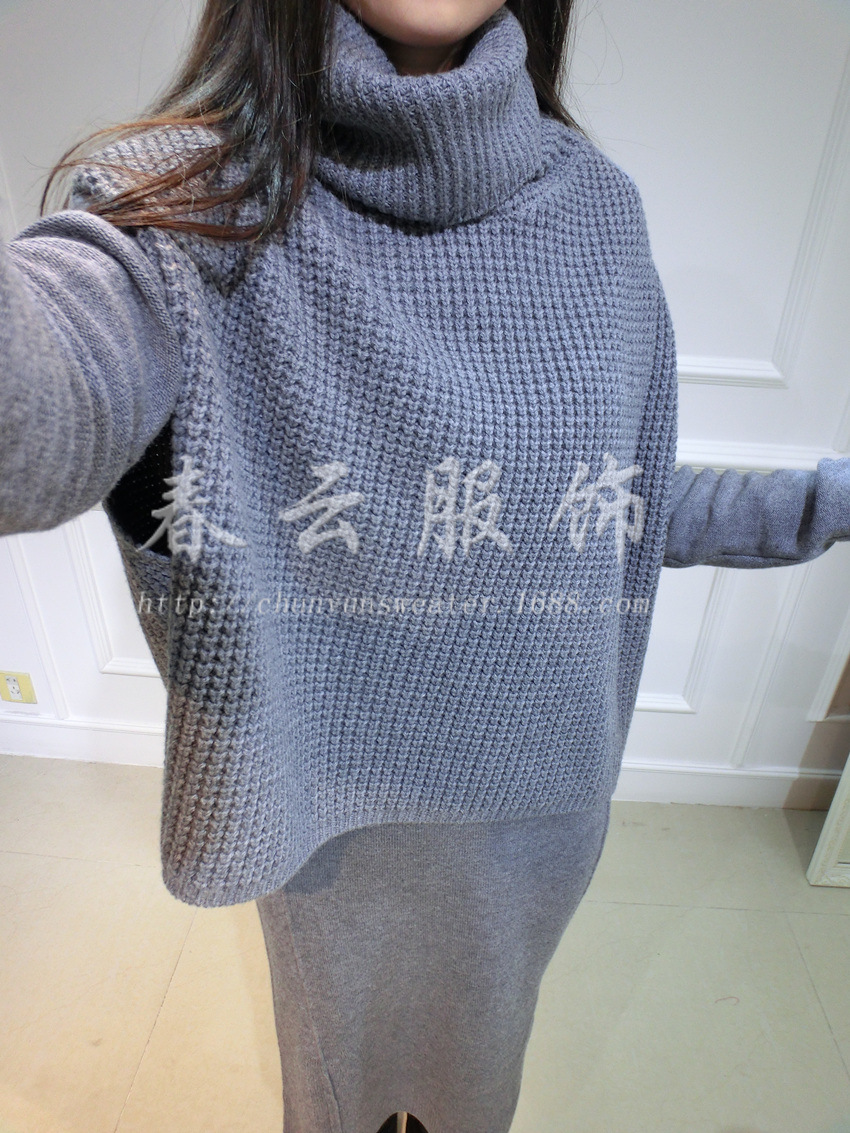 ASM2015A/W 秋冬系列 3WAY穿法 兩件套高領(lǐng)開叉全羊毛針織長裙 /