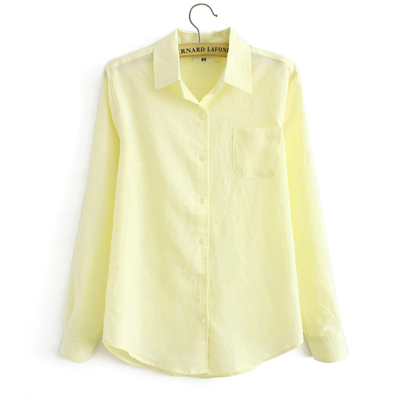 2015夏季夏款棉麻女裝襯衫大碼長袖布衣文藝純色長袖亞麻料襯衣女 /