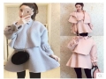 2015冬裝新款呢料娃娃袖外套搭可愛背心A字名媛連衣裙兩件套# /