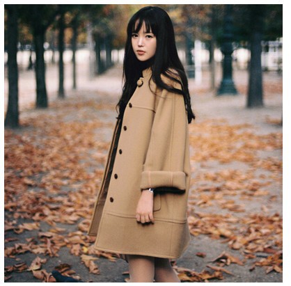 2015冬裝韓版新款女中長款小香風(fēng)修身學(xué)院風(fēng)女裝呢子大衣毛呢外套 /
