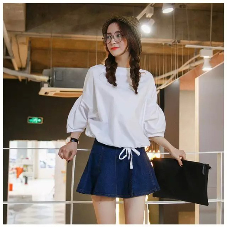 2015夏裝新款 韓版寬松燈籠袖抽繩圓領顯瘦短款娃娃衫女襯衫上衣 /