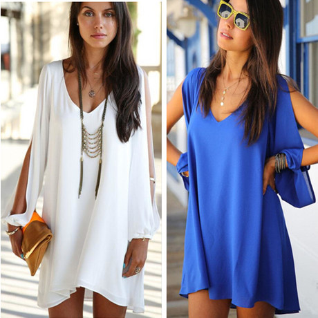 廠家直銷2015春夏V領長袖雪紡大碼休閑連衣裙外貿原單一件代發(fā) /