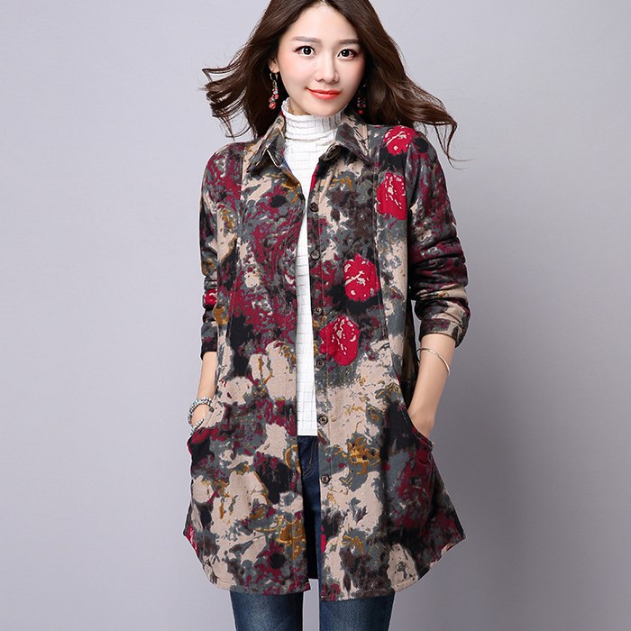 傾城依軒時尚秋冬棉衣女中長款修身薄休閑花棉服民族風(fēng)D1009 /