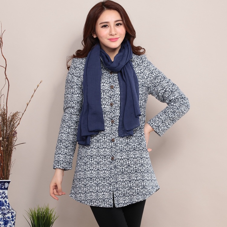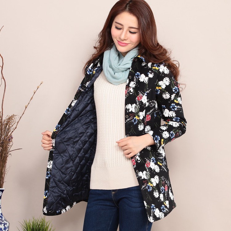 女裝薄棉襖修身棉服中長款碎花棉衣秋冬中長款夾棉外套 D1013 /