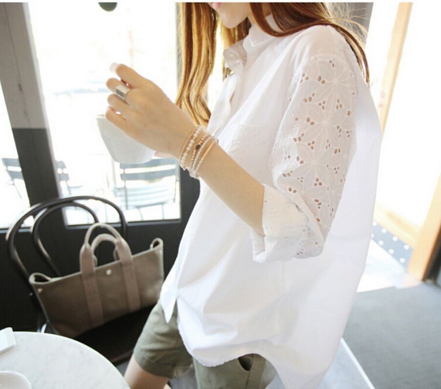 F028 原創(chuàng)文藝 15春夏新款鏤空全棉白襯衣 /