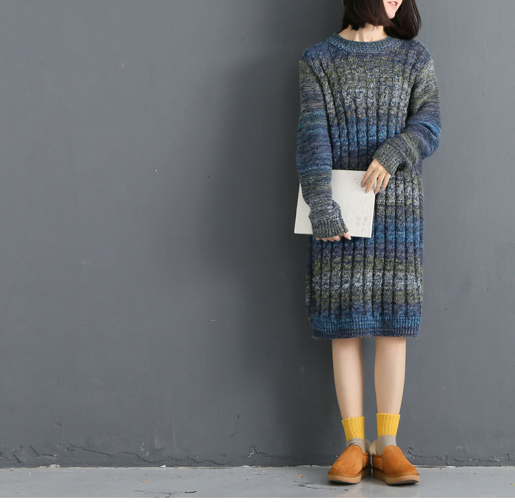 條紋中長(zhǎng)款毛衣 連衣裙 /