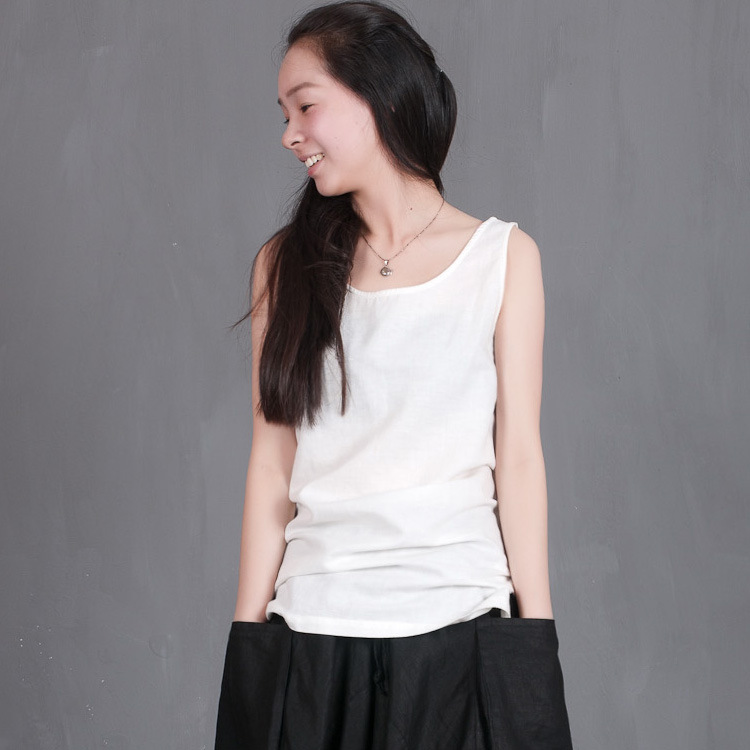 2015夏款棉麻精梳背心打底工字百搭不透多色亞麻寬松舒適 /