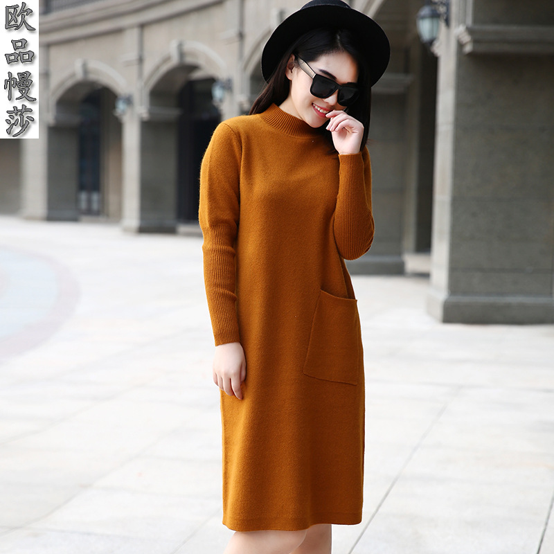 2015秋冬歐美新款長款貂絨打底衫針織衫半高領(lǐng)毛衣女廠家批發(fā) /