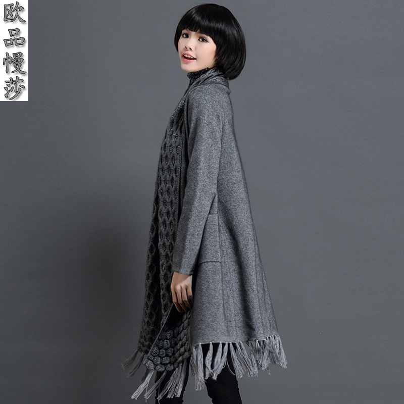 2015秋冬新品貂絨大衣歐美版中長款高端翻領(lǐng)女士流蘇女外套批發(fā) /