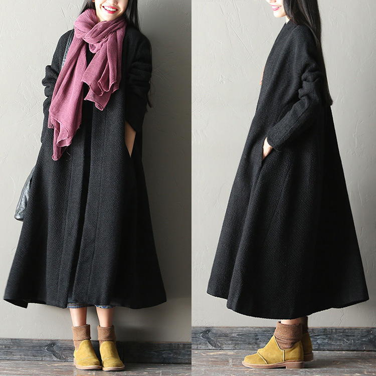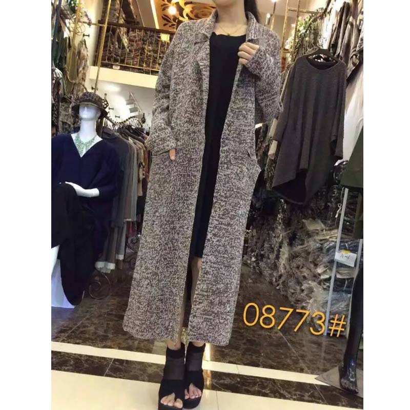 新品秋冬超顯瘦長款寬松毛呢外套 女韓版帥氣蝙蝠袖毛呢開衫女裝 /