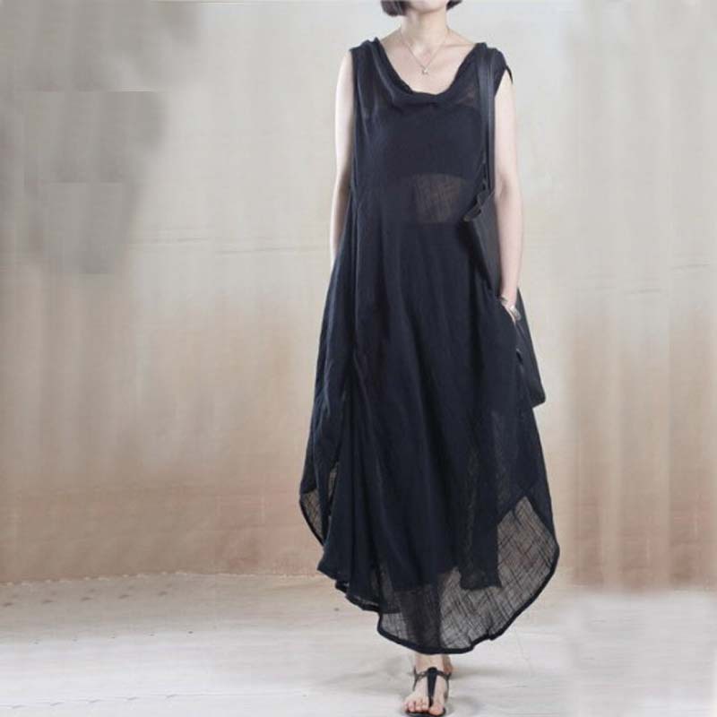 2015夏季新款例外風格 亞麻寬松無袖長裙 /