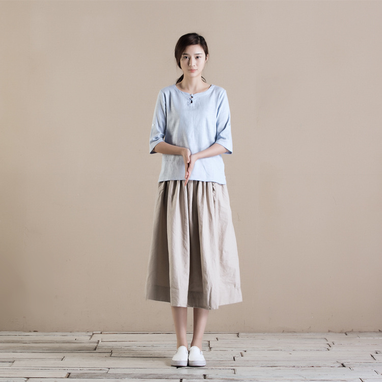 2015秋季新款棉麻上衣t恤 品牌寬松女式盤扣上衣 個性七分女上衣 /