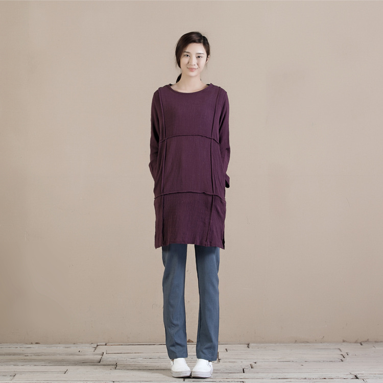 原創(chuàng)設(shè)計文藝亞麻中長款套頭衫大碼棉麻長袖打底衫秋季女裝外套 /