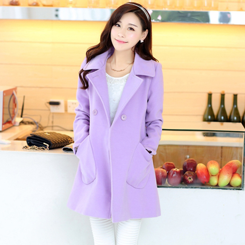 2015秋裝毛呢外套女韓版修身中長款翻領(lǐng)毛呢大衣斗篷呢子大衣女款 /