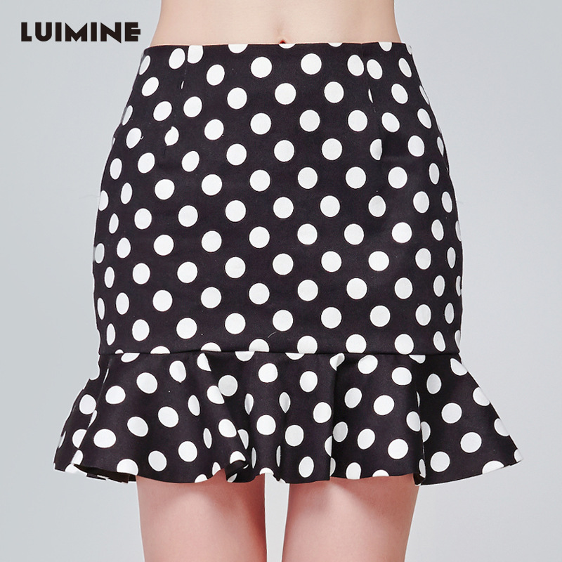 2015新款韓版女裝裙子荷葉邊波點(diǎn)短裙包臀魚尾半身裙下裝 /