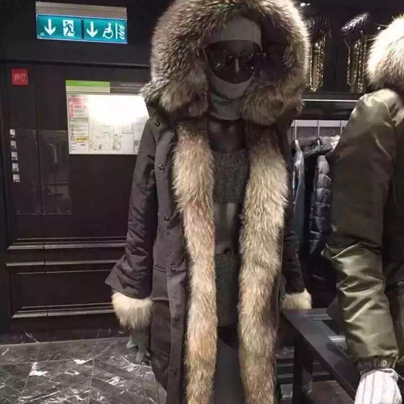高端定制銀藍(lán)銀狐狐貍毛領(lǐng)連帽皮草羽絨服女中長款外套2015新款冬 /