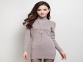 產(chǎn)地供應(yīng) 2015秋冬季女式毛衣中長款兩翻領(lǐng)氣質(zhì)修身包臀打底衫 /