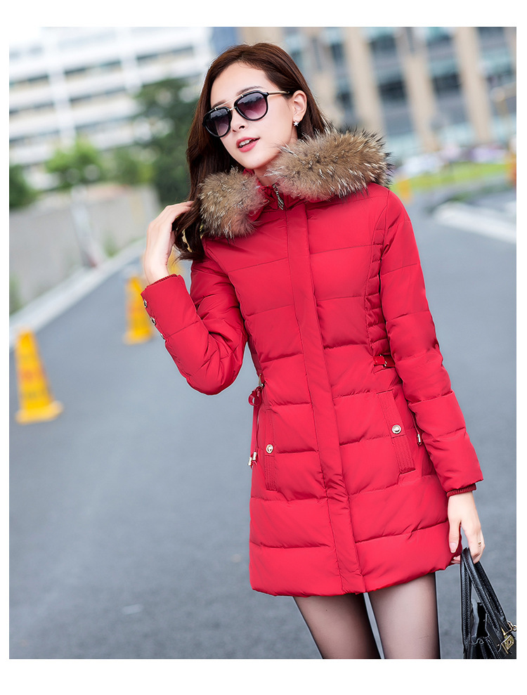 2015韓版修身時尚可拆卸大毛領中長款連帽羽絨服 女裝 100%白鴨絨 /