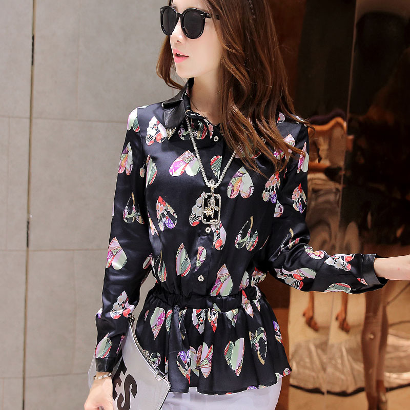 韓版潮花色打底衫女2015秋裝新款長袖印花雪紡衫女襯衫658# /