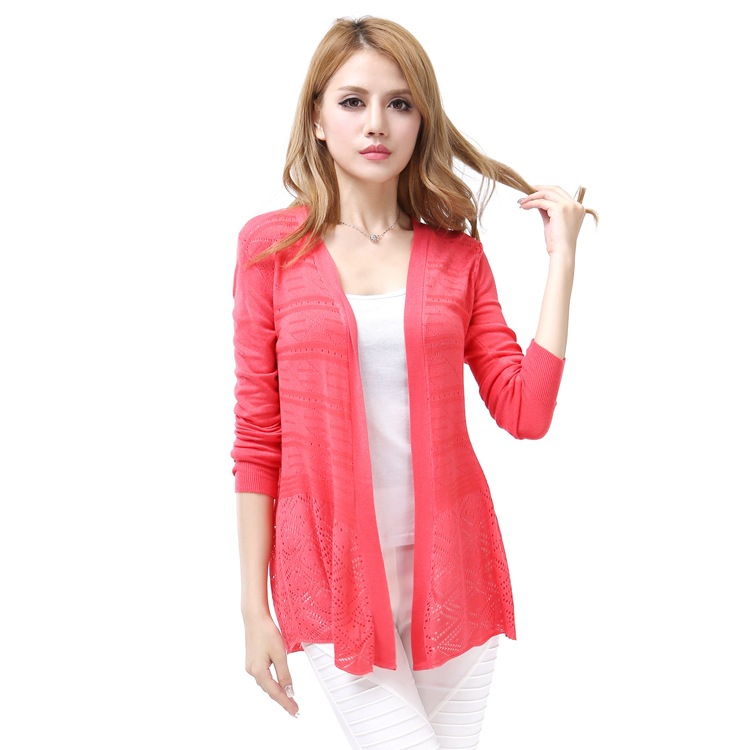 2015春季新款中長袖寬松大碼 針織鏤空防曬衣 /