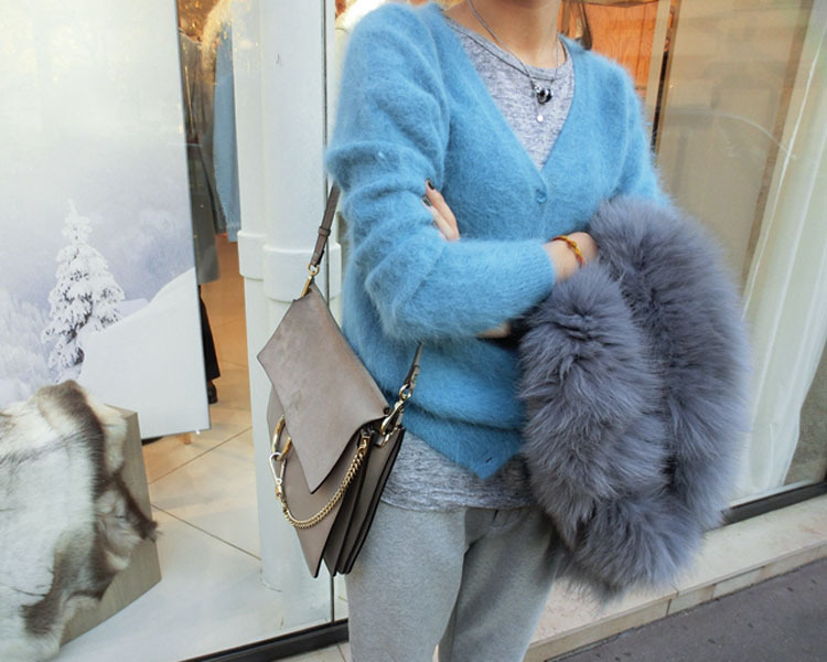 2015秋冬新款修身韓版開衫毛衣女 大碼V領(lǐng)長袖仿貂絨針織衫外套 /