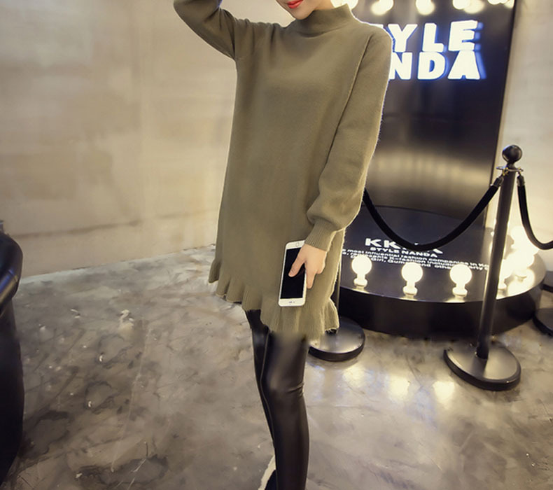 2015秋冬新款女裝韓版修身半高領(lǐng)毛衣套頭中長款打底針織衫連衣裙 /