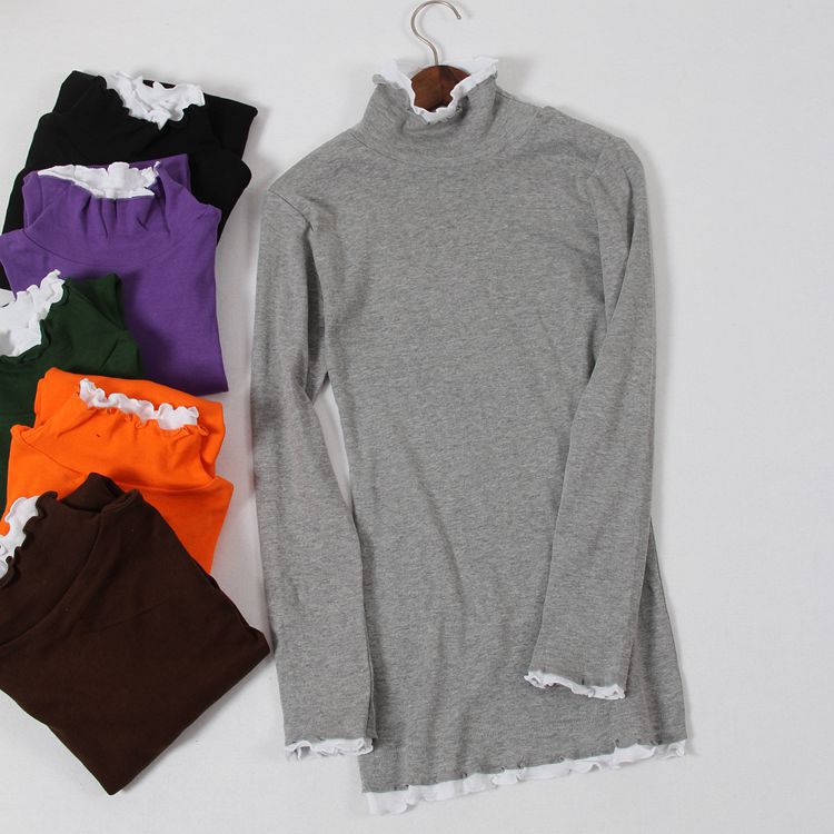 2015秋冬新款韓版花邊拼接長袖修身顯瘦打底衫T恤上衣外貿(mào)女裝 /