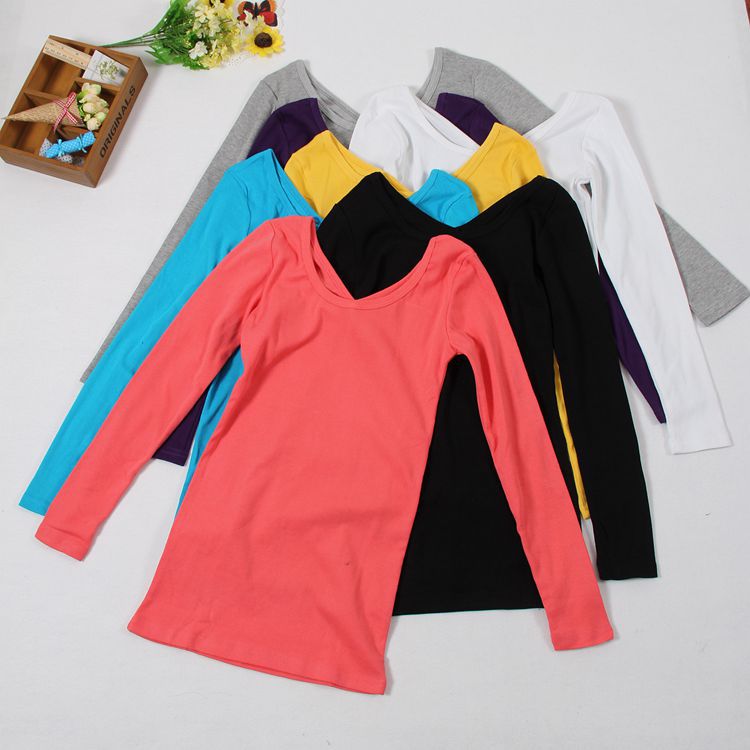 2015秋冬新款韓版前U后V領(lǐng)修身顯瘦打底衫百搭T恤上衣外貿(mào)女裝 /