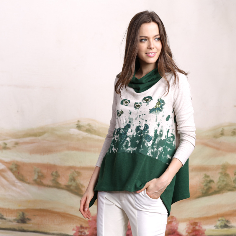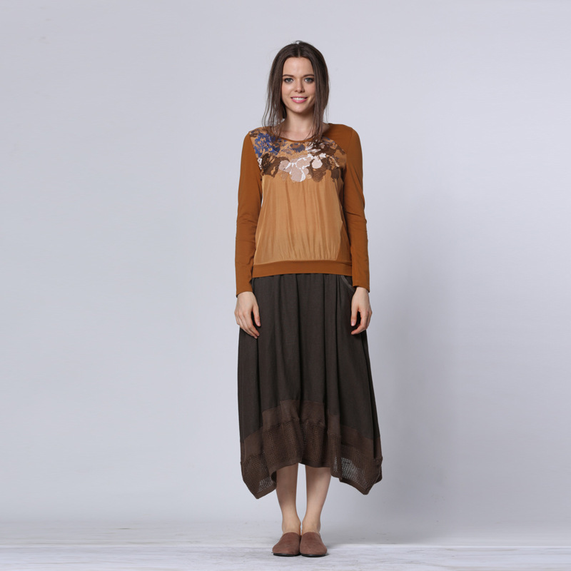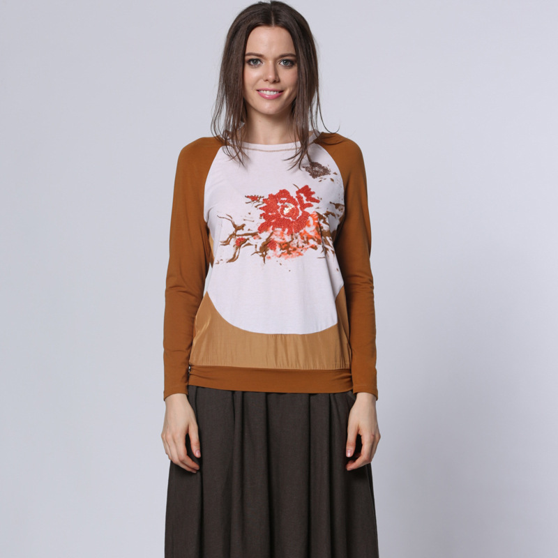 繡花工藝麗比多棉帛坊 長袖時(shí)尚休閑棉麻女裝裝套頭修身針織衫女 /