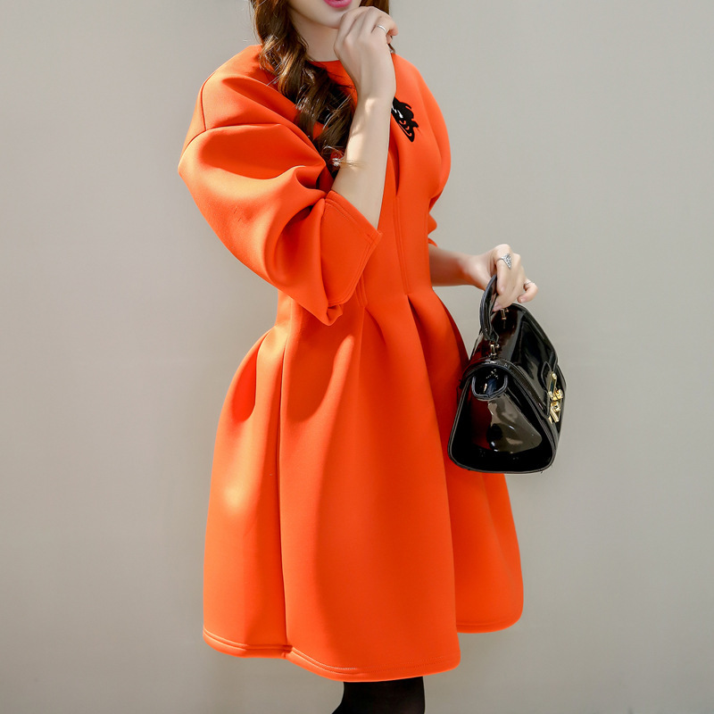 WZF6570 韓版女裝時(shí)尚新款瘦腰大碼連衣裙棉質(zhì)純色九分袖批發(fā) /