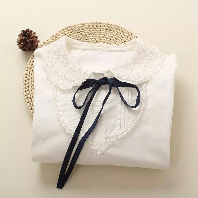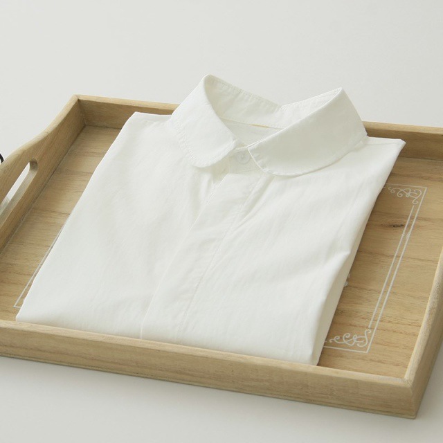 清新學(xué)院風(fēng)娃娃領(lǐng)學(xué)生純棉打底白色襯衫女襯衣長袖春裝新款 /