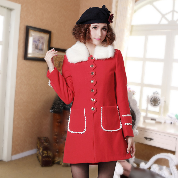 2015秋冬新款韓版時尚修身甜美百搭花瓣中長款大衣毛呢外套女潮 /