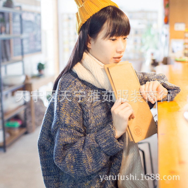 冬季女套頭圓領(lǐng)寬松慵懶加厚麻花復(fù)古寬松款百搭女毛衣 /