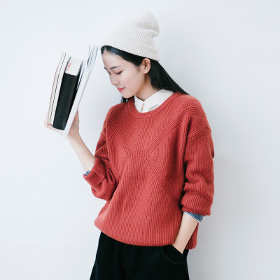 敘舊去年今日/圓領(lǐng)套頭毛衣女百搭秋冬純色針織毛衣2015 /