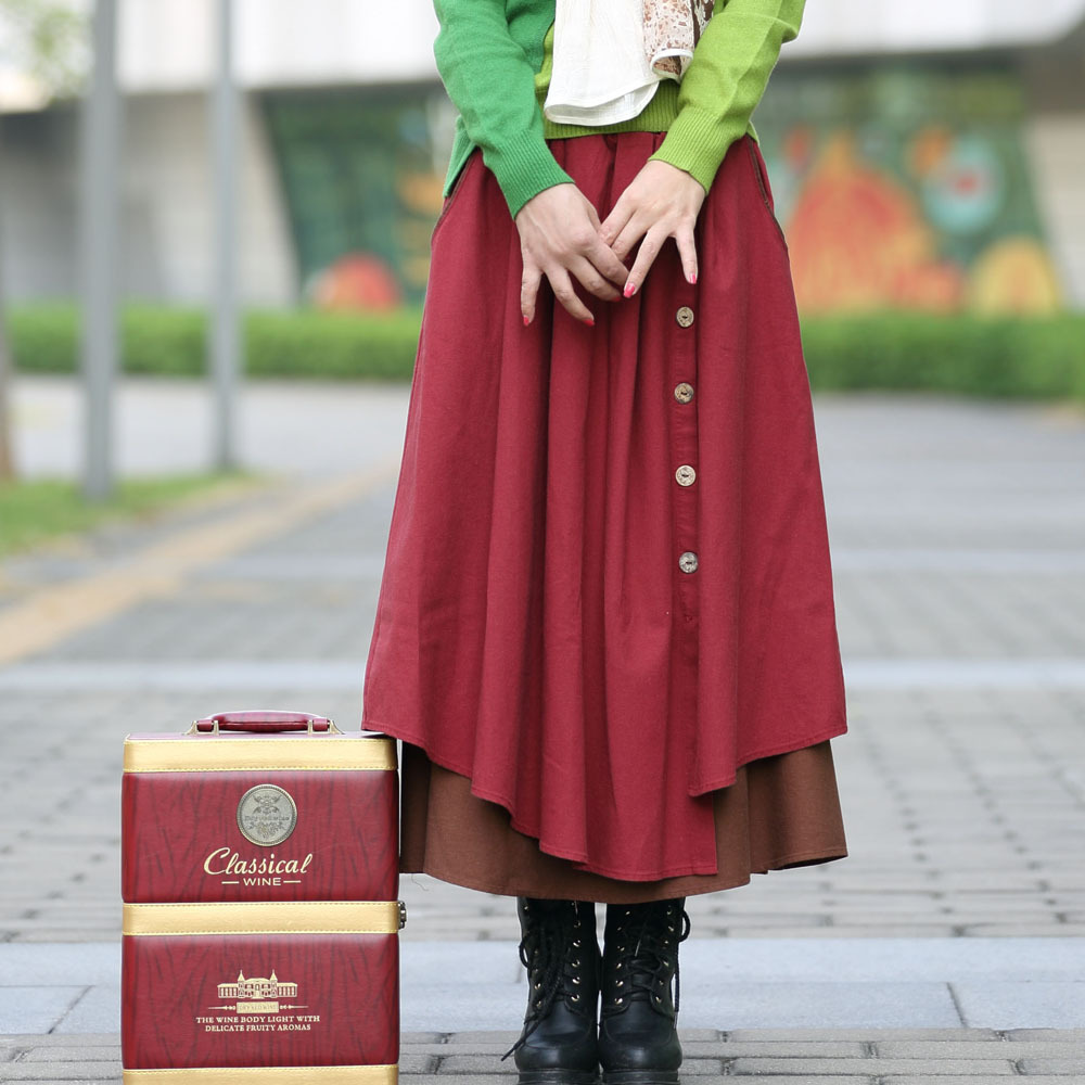 爆款春秋冬時尚韓版新款休閑女裝文藝A字棉麻長裙 半身裙 大擺裙 /