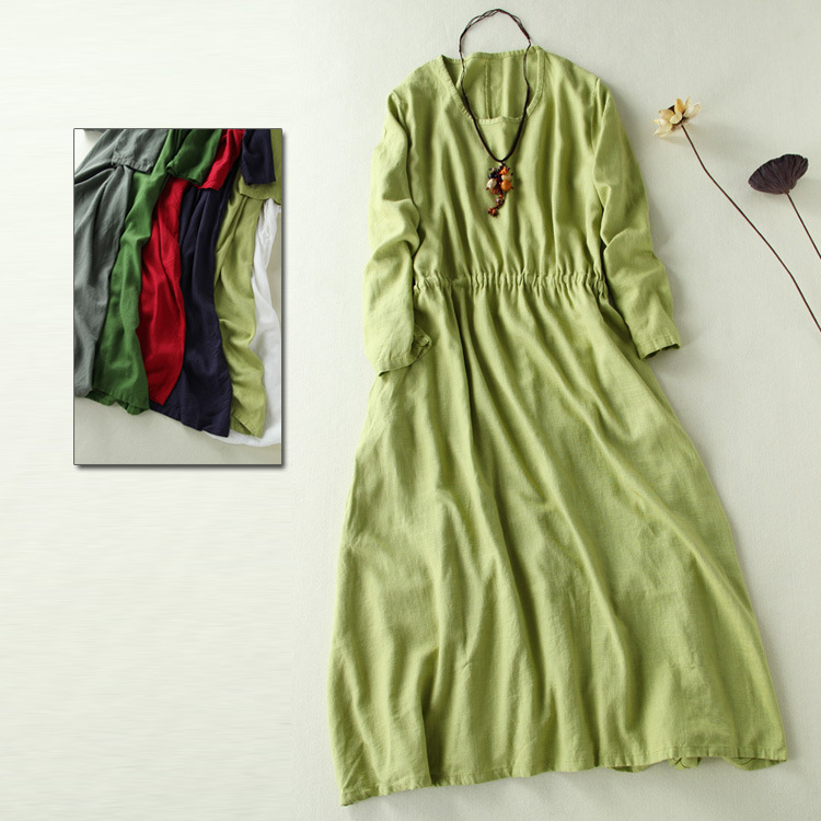 2015秋裝新款原創(chuàng)氣質(zhì)范亞麻棉麻連衣裙中長款大碼 /