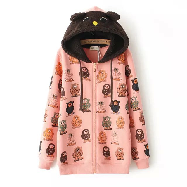 2015秋冬新款加絨貓頭鷹抓絨衛(wèi)衣開衫外套新款女士衛(wèi)衣廠家直銷 /