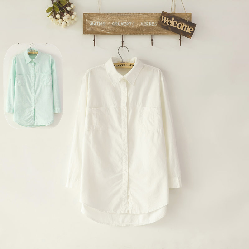 春秋新款日系文藝小清新寬松純棉長袖打底白襯衫襯衣女大碼 /