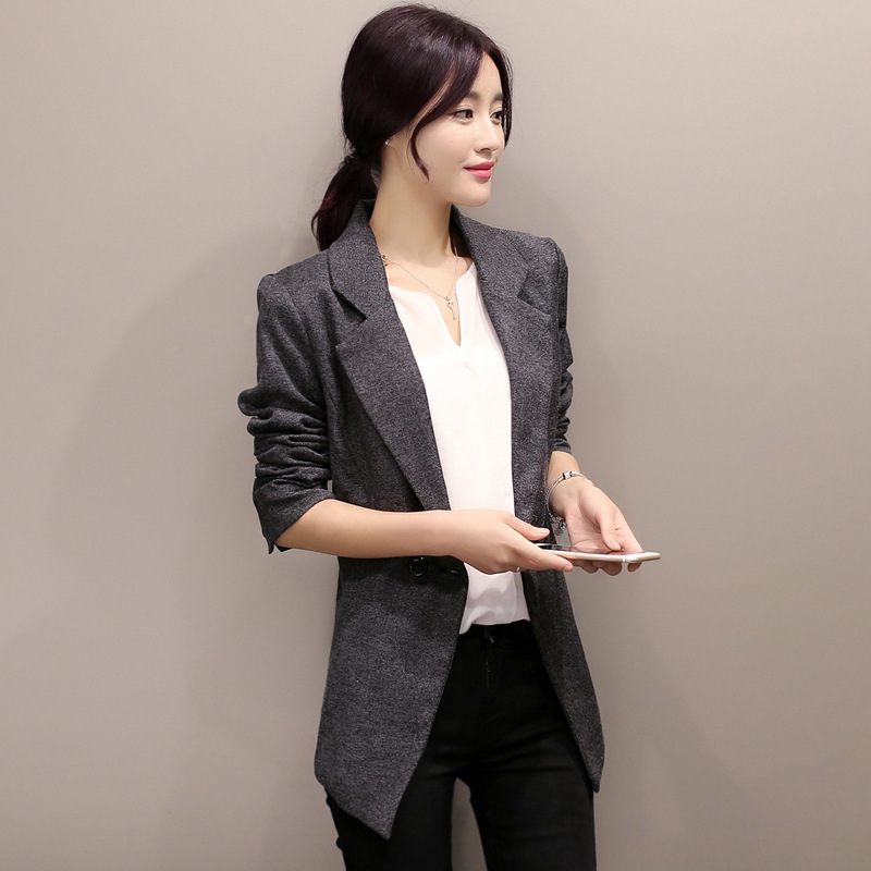 2015秋款新款韓版顯瘦棉麻小西服修身中長款春秋高端小西裝外套女 /
