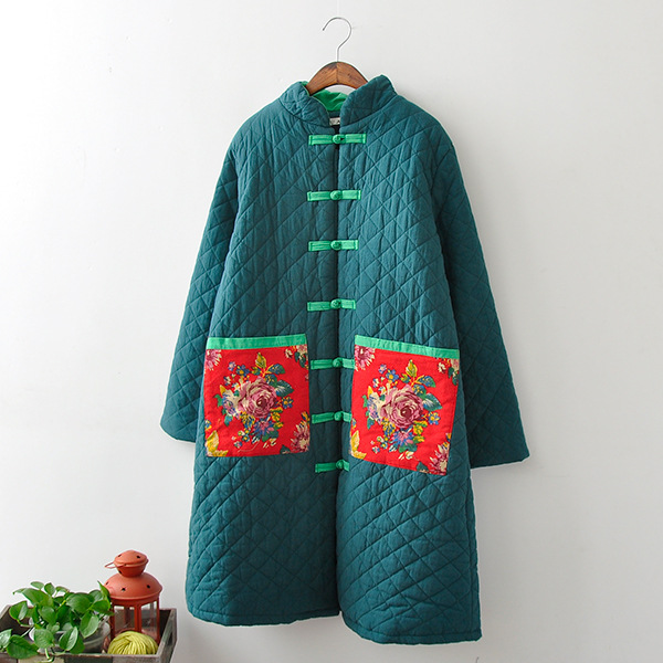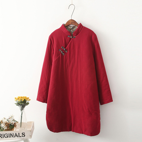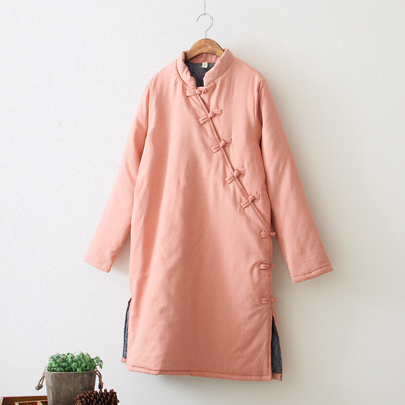 秋冬文藝民族風(fēng)立領(lǐng)斜襟盤扣棉衣中長(zhǎng)款棉襖外套中式女裝 /